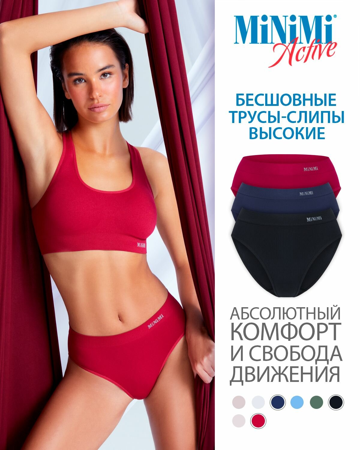 Трусы женские Б_MINIMI MA222 Slip Alte Rubino/Nero/Blu Notte 46/48 (M/L) комплект 3шт 1 049 ₽