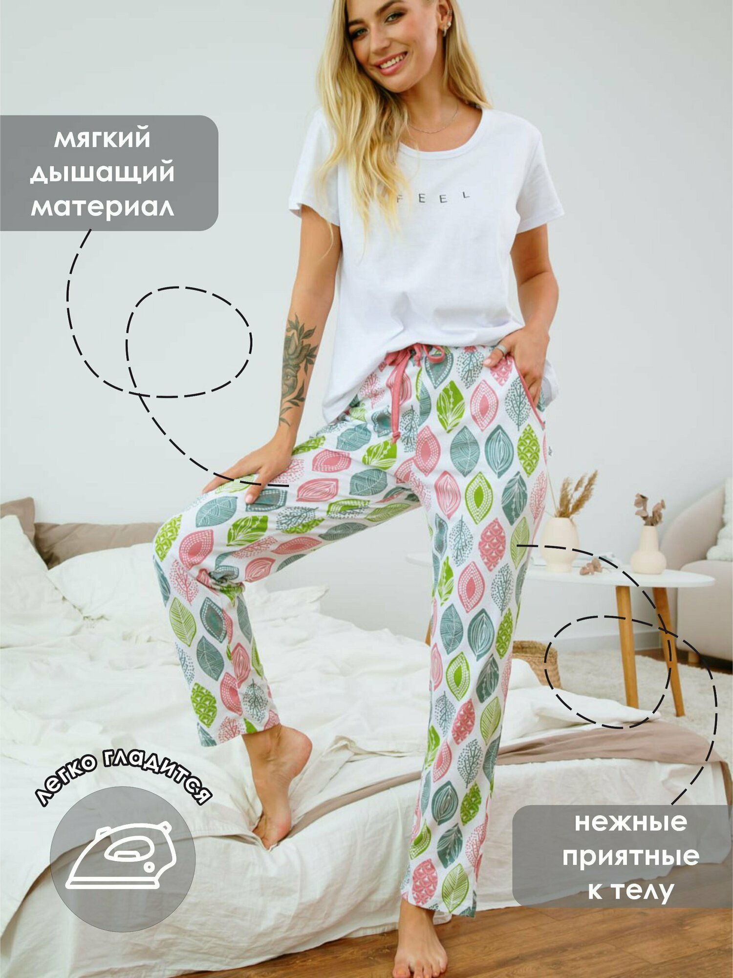 Брюки женские Ohana market/Женские штаны/Для дома/Пижамные брюки/Хлопок 100%, размер 48 796 ₽