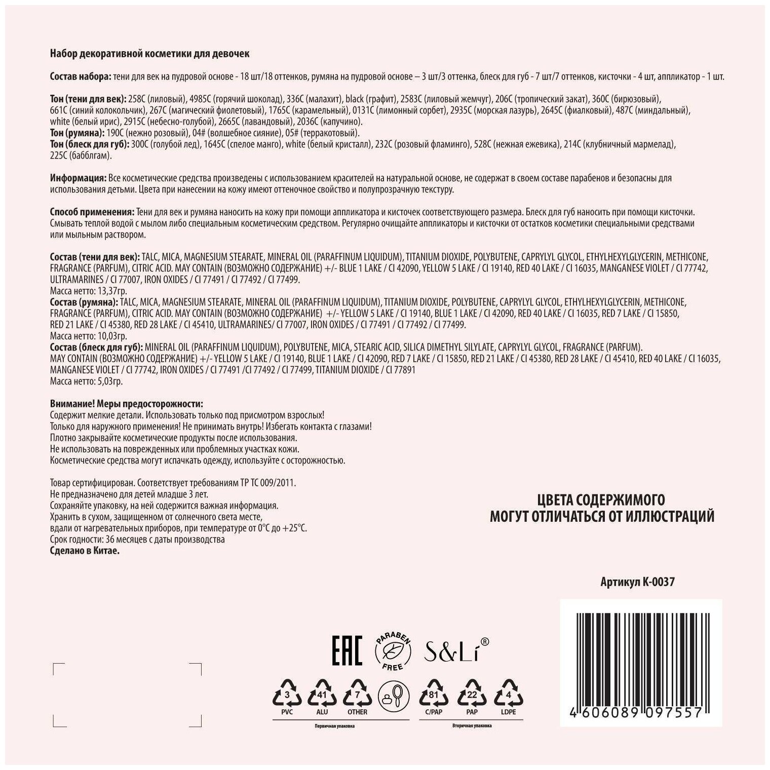 | Не содержит | искусственные красители / парабены |