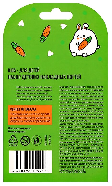 Набор детских накладных ногтей DECO. KIDS самоклеящиеся chick 24 шт информация:
