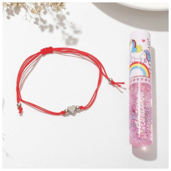 Queen fair Набор 2 предмета: браслет, блеск для губ "Единорог" сердечко, цвет красный информация:
