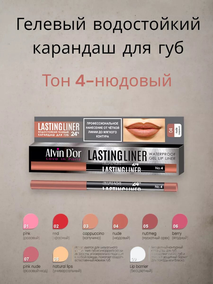 10 цен на Карандаш для губ гелевый водостойкий LASTINGLINER 04