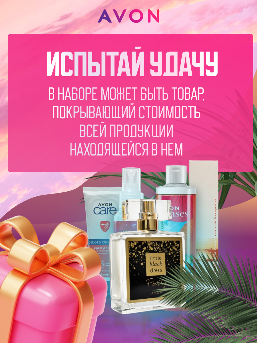 | Состав | Пакет сюрприз avon состоит из 5 -ти / женских товаров / включая 1 аромат - обязательно!!!! . Состав пакета формируется произвольным образом. Подарочный набор женский от avon в коробке - отличный подарок на день рождение или подарок без повода. Набор косметики включает 5 товаров из категорий Бьюти бокс для девушки- это отличный подарок. Косметики много не бывает. Бьюти бокс на день рождения маме подруге бабушке / на День матери. |