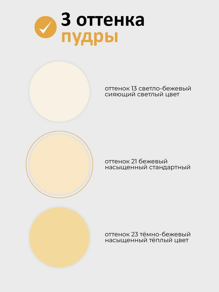| Способ применения | Нанести пудру на завершающем этапе ухода за кожей. Равномерно распределить с помощью аппликатора. |