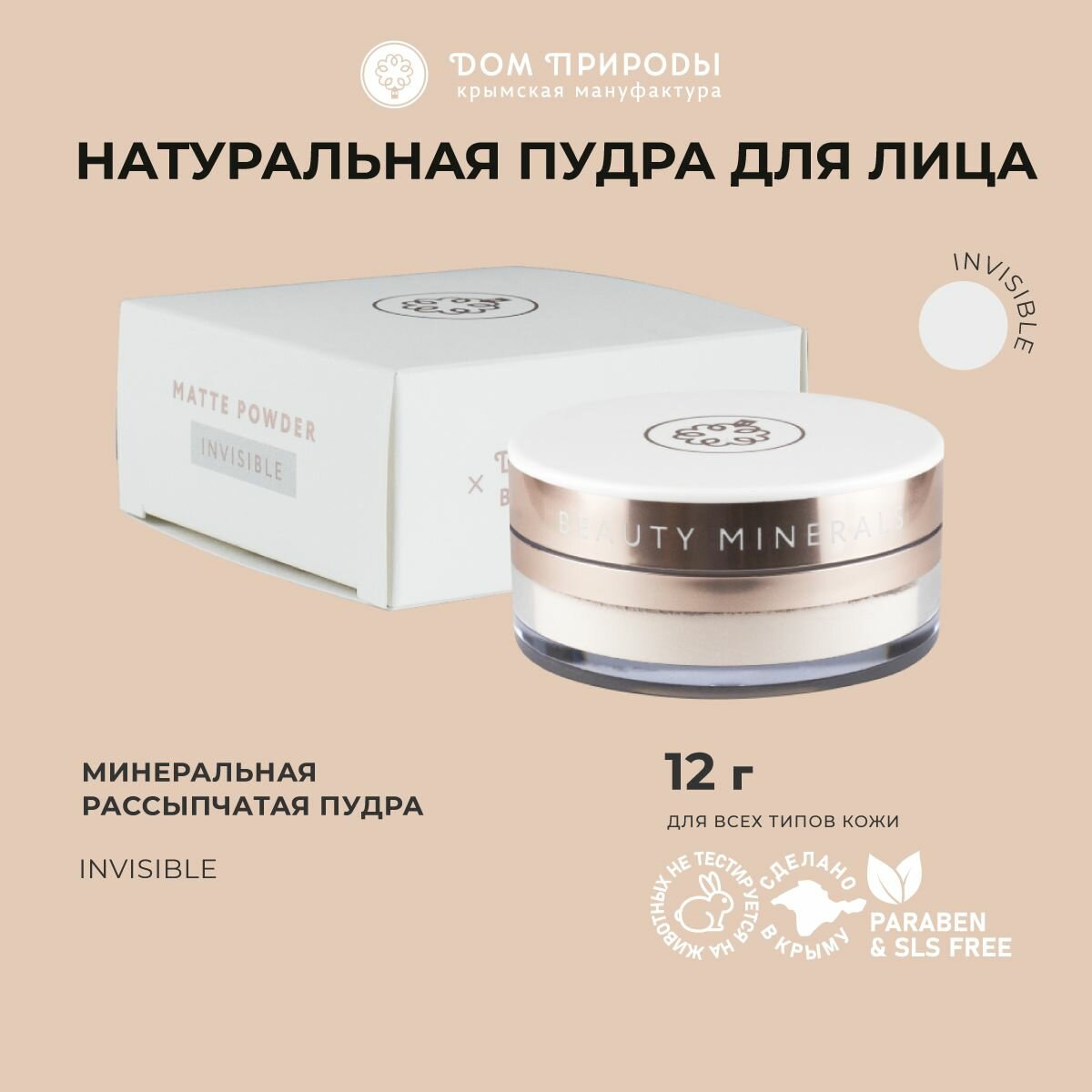 Пудра минеральная рассыпчатая "Невидимая вуаль", 12г, Дом природы информация: