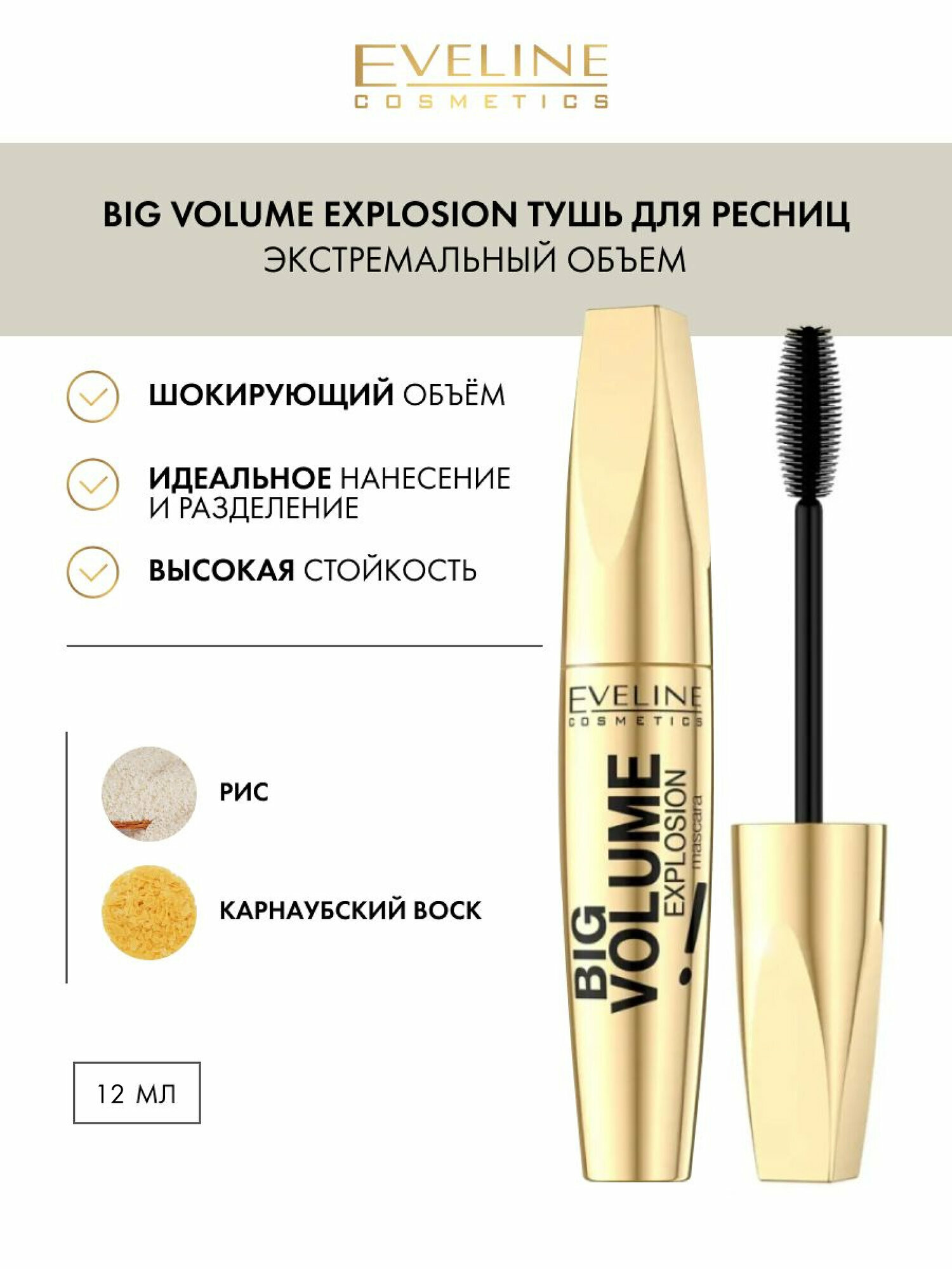 Тушь для ресниц BIG VOLUME EXPLOSION экстремальный объём, черный, 12 мл информация:
