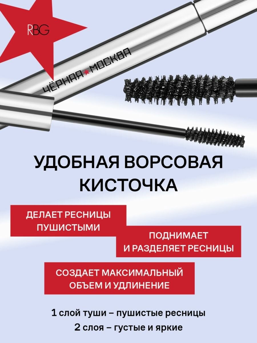 Тушь для ресниц RBG "Черная Москва", объем и удлинение эффект накладных ресниц, черная 12 мл 1 567 ₽