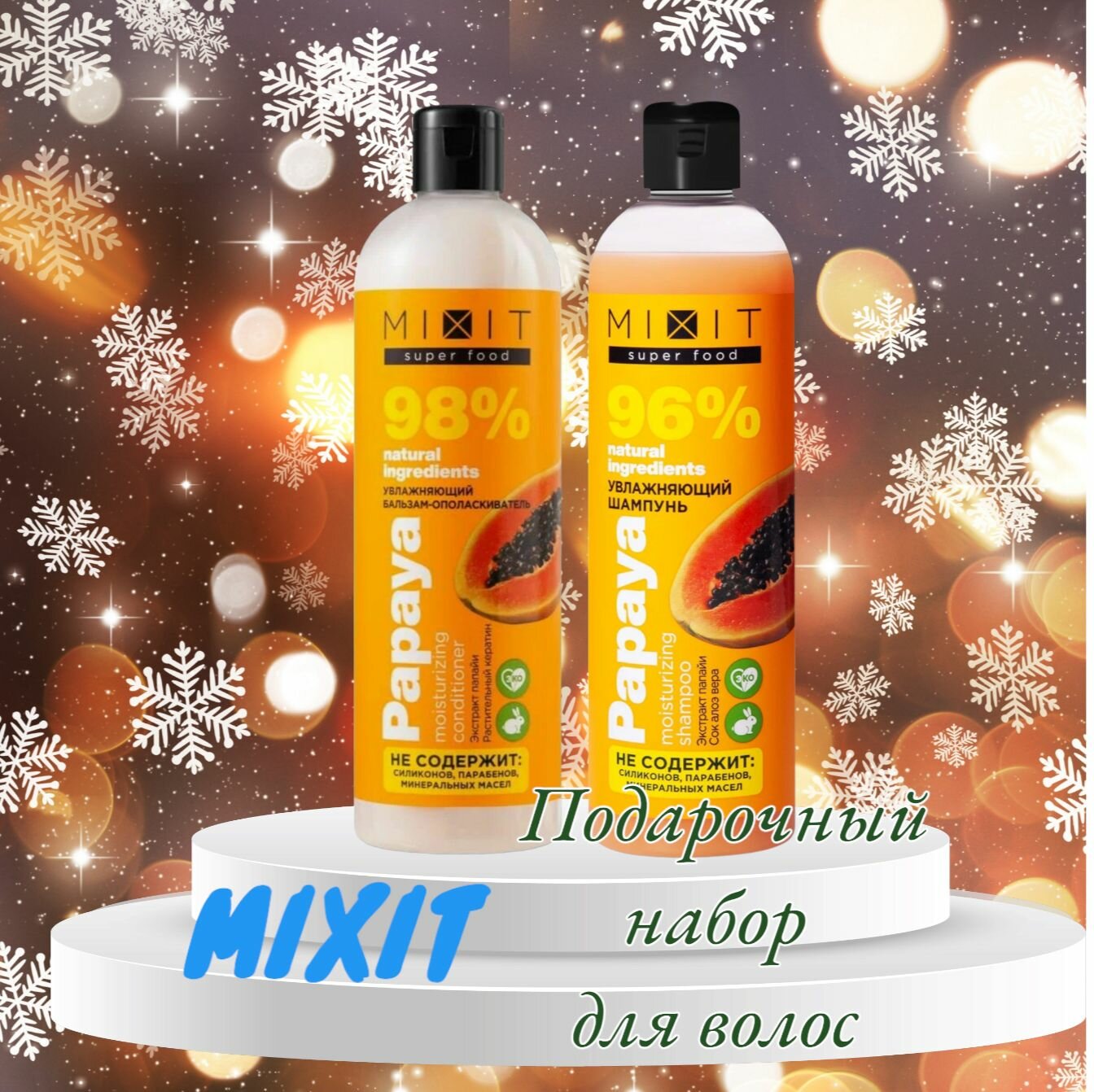 MIXIT Подарочный набор увлажняющий с экстрактом папаи , и алоэ вера для блеска и сияния волос. Шампунь 400 мл+ бальзам 400 мл.
