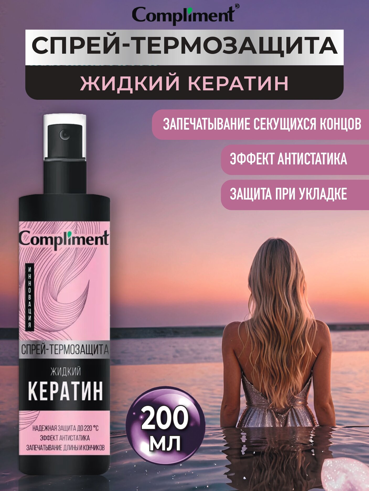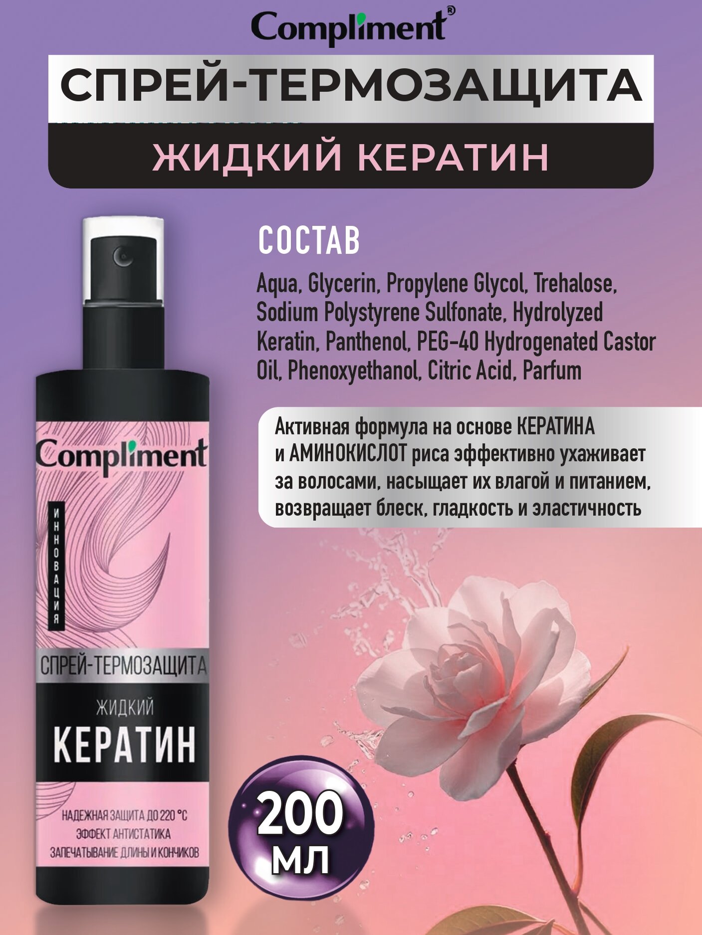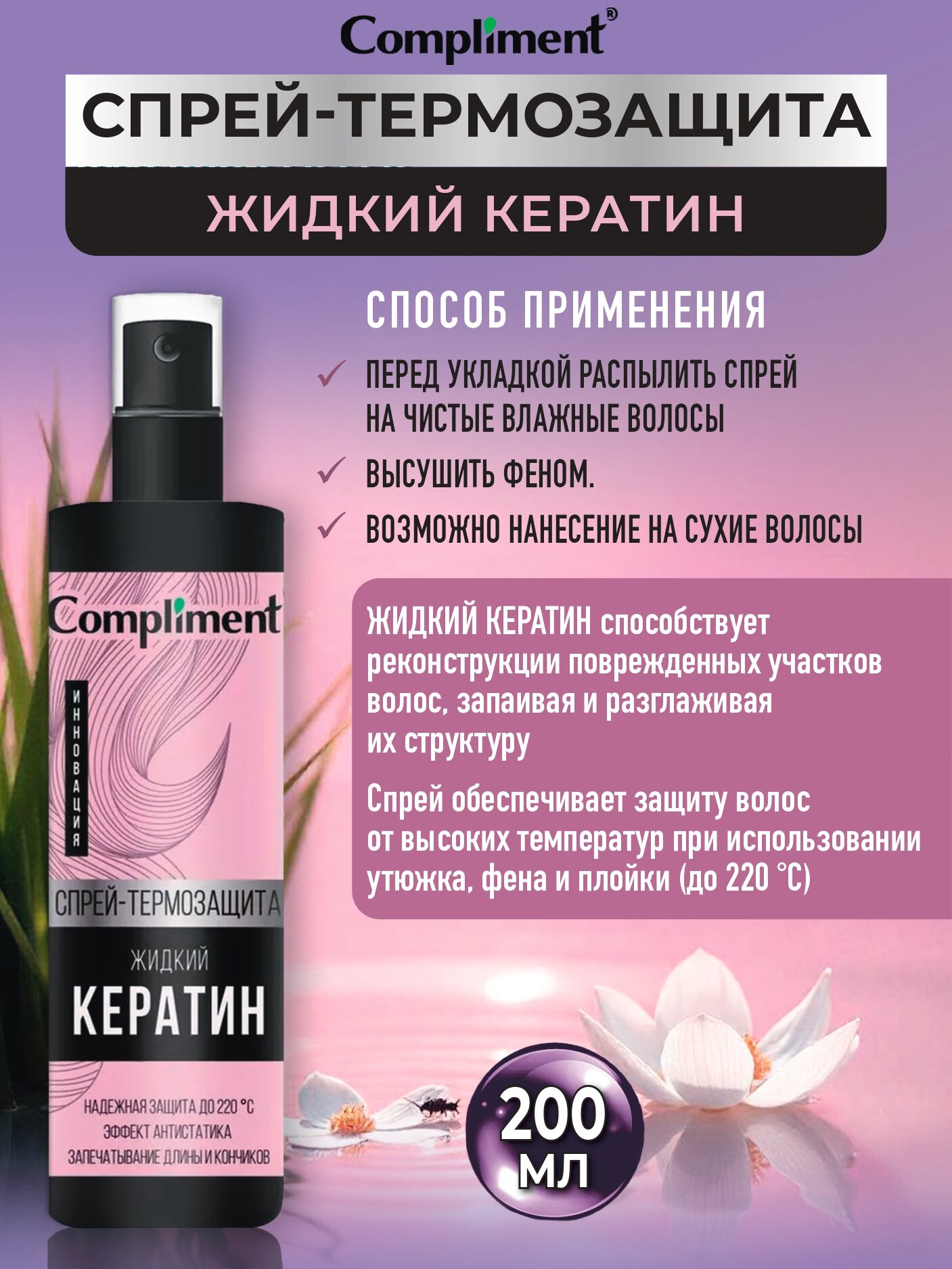 10 цен на Compliment спрей-термозащита для волос жидкий кератин, 200мл
