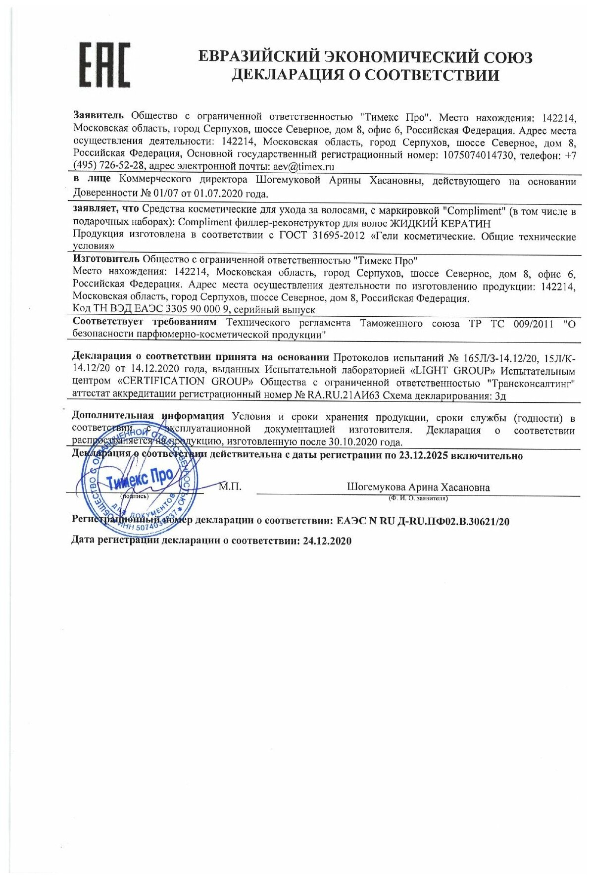 Compliment жидкий кератин филлер-реконструктор для волос, 50мл информация: