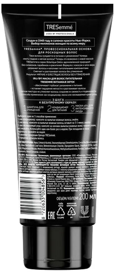 Tresemme Маска для волос Botanique Detox 3 в 1 "Питательная", 200 мл, 1 шт информация: