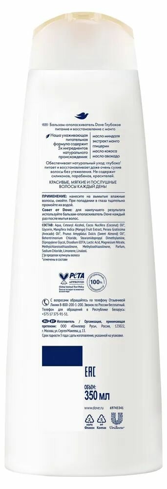 Dove бальзам-ополаскиватель глубокое питание и восстановление с ароматом Манго
