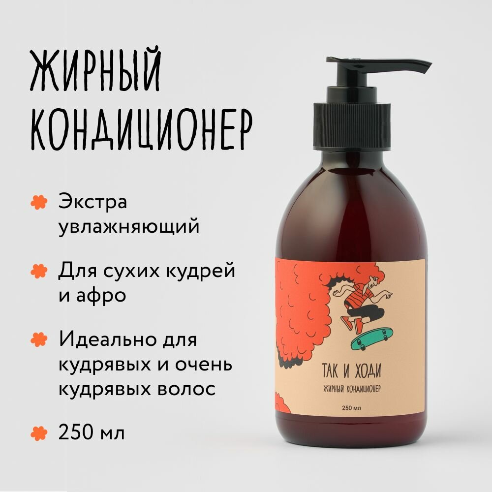 Жирный кондиционер для кудрявых и вьющихся волос Так и ходи с запахом хлопкового мёда, 250 мл 1 250 ₽