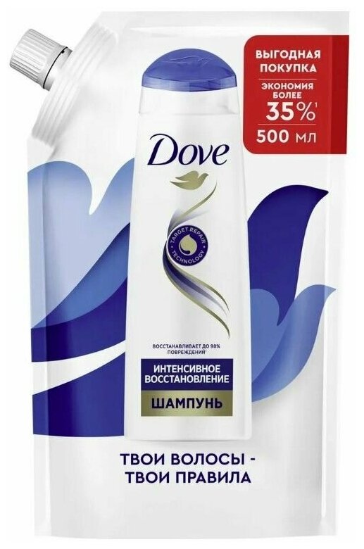 DOVE Шампунь для волос интенсивное восстановление, 500мл дой-пак, 2шт. 1 590 ₽