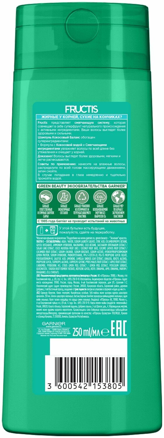 GARNIER Шампунь для волос Fructis Кокосовый Баланс, 250 мл - 2 шт информация: