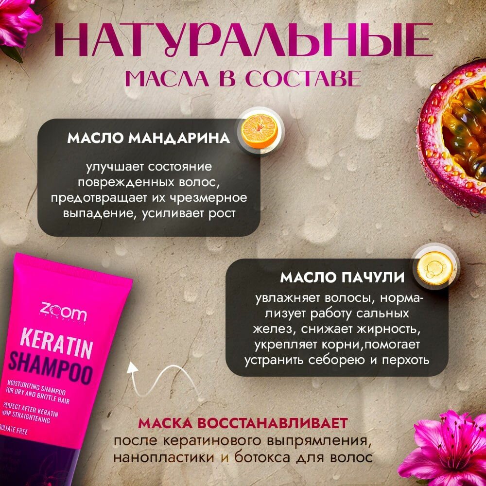 ZOOM cosmetics Шампунь бессульфатный для домашнего ухода, ZOOM Keratin 250ml информация: