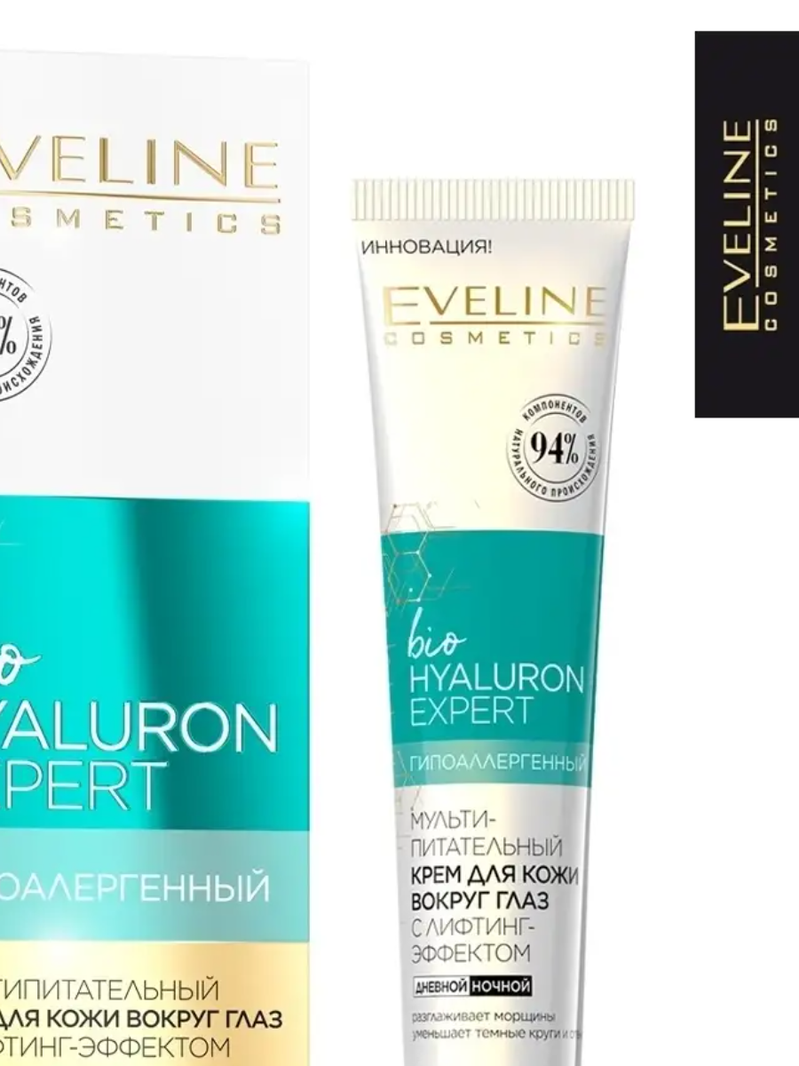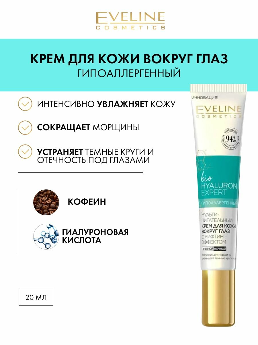 Гипоаллергенный мультипитательный крем вокруг глаз с лифтинг - эффектом, Eveline Cosmetics, Biohyaluron expert, 20 мл