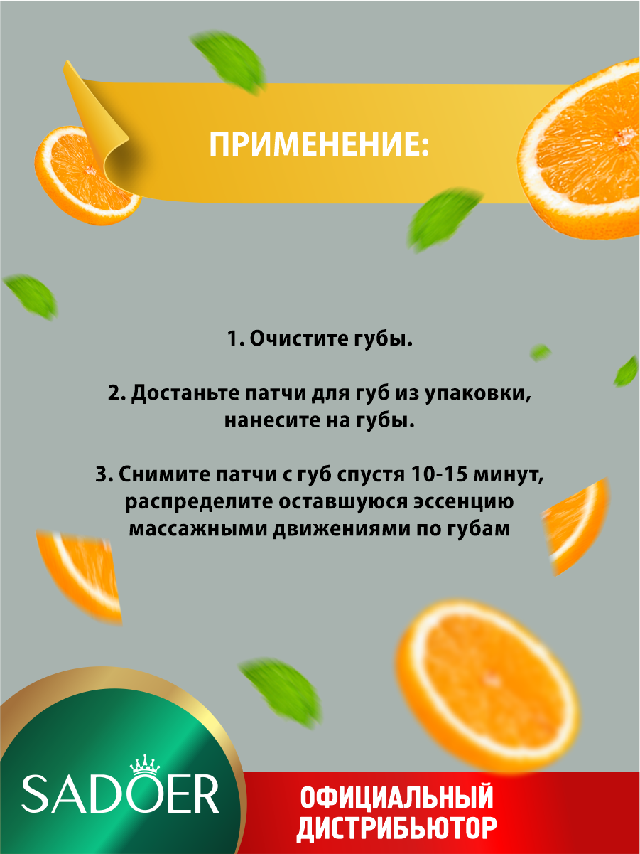 Увлажняющие патчи для губ Sadoer с экстрактом апельсина 8 гр. х 5 шт. информация: