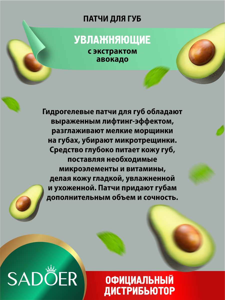 Увлажняющие патчи для губ Sadoer с экстрактом авокадо 8 гр. х 10 шт. информация: