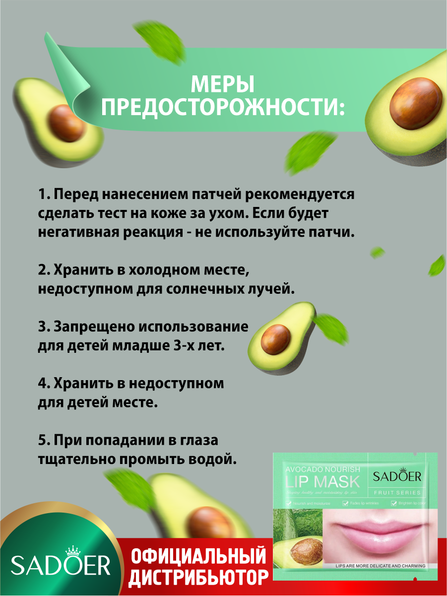 Увлажняющие патчи для губ Sadoer с экстрактом авокадо 8 гр. х 5 шт. информация: