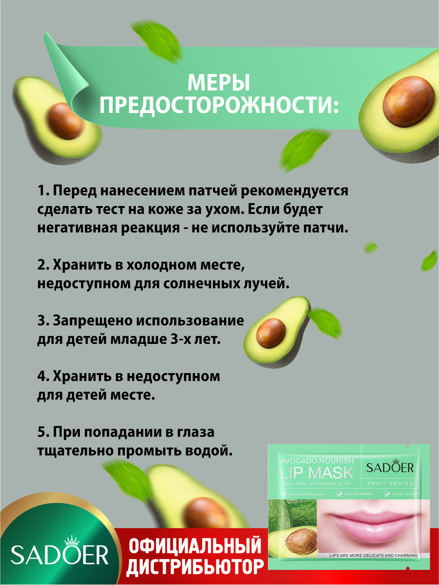 Увлажняющие патчи для губ Sadoer с экстрактом авокадо 8 гр. х 20 шт. информация: