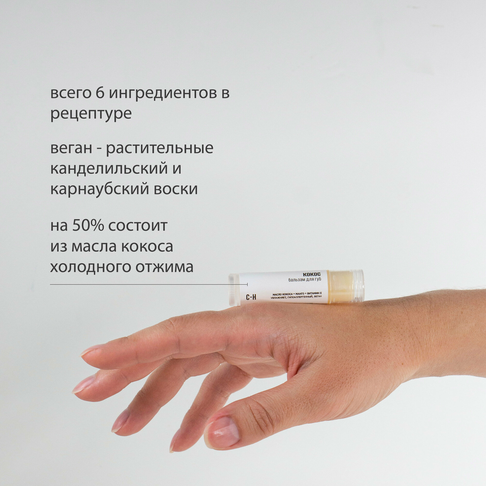 C-H / Увлажняющий бальзам для губ Кокос, гипоаллергенный, веган, 5 г информация: