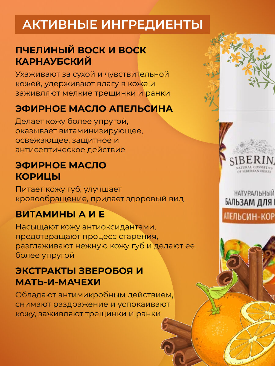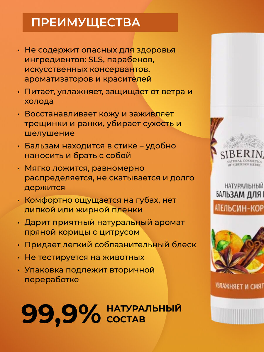 10 цен на Siberina Натуральный бальзам для губ "Апельсин-корица"