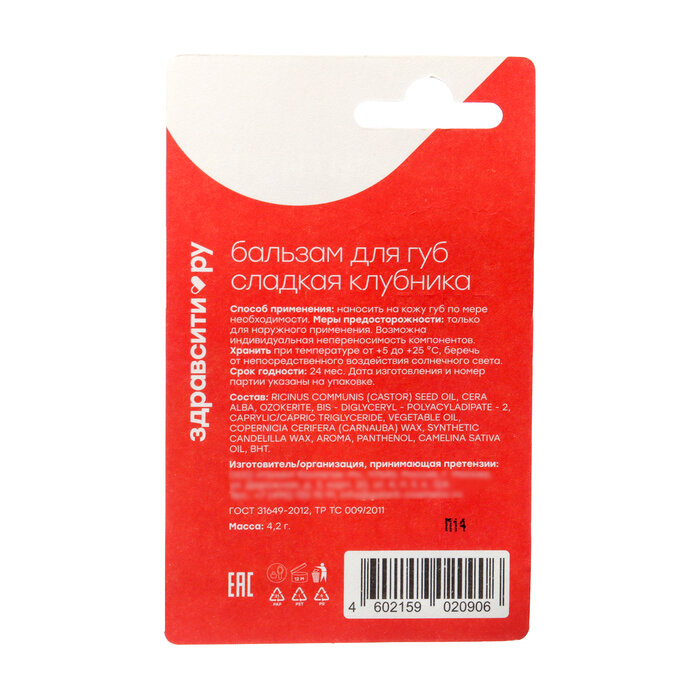 Бальзам для губ Здравсити "Сладкая клубника", 5 шт по 4,2 г 10257747 информация: