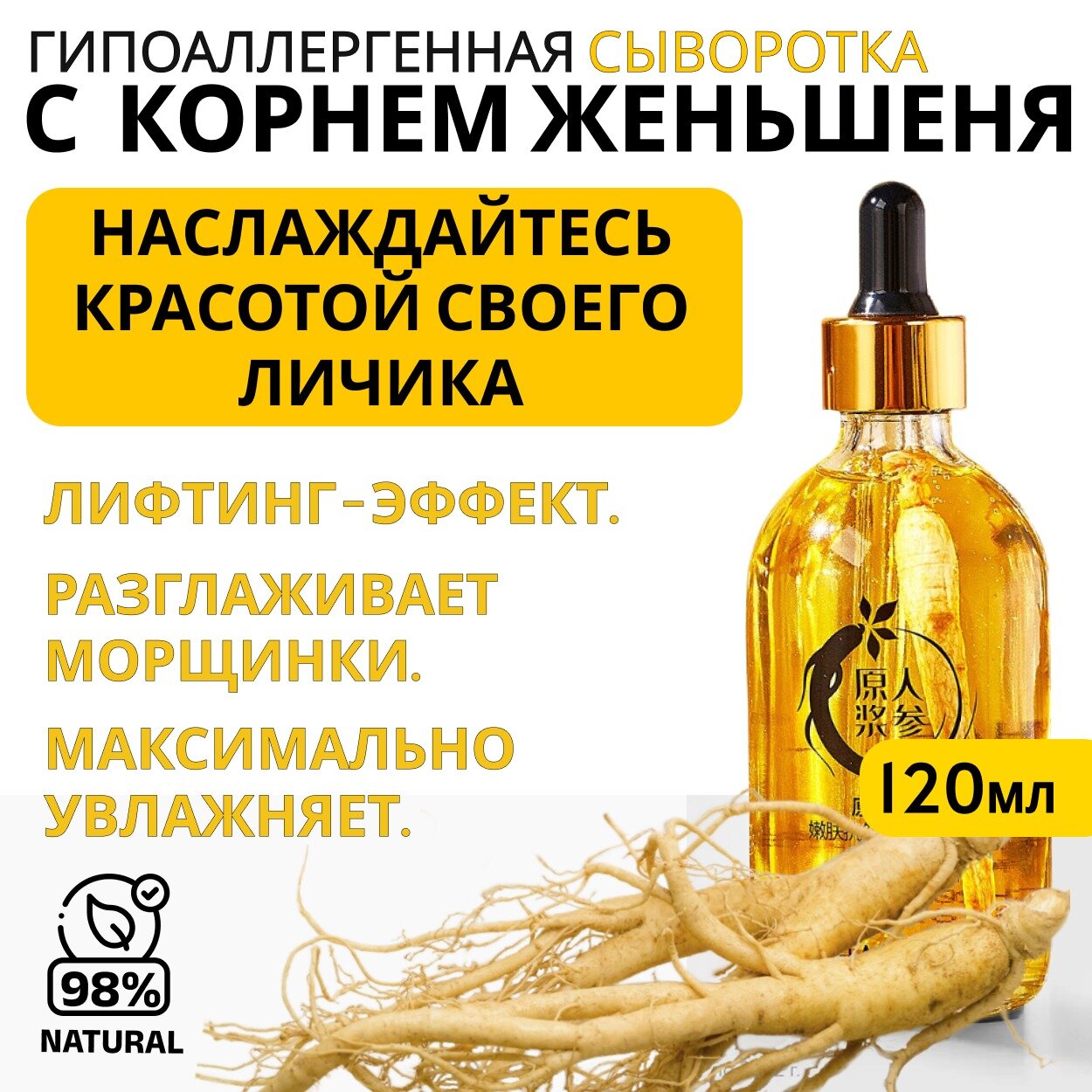Омолаживающая сыворотка для лица с коллагеном и женьшенем. 120ml информация: