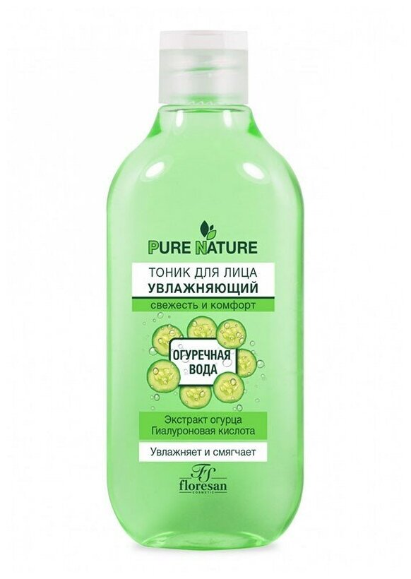 Floresan Тоник Floresan Pure Natural "Увлажняющий. Огуречная вода", свежесть и комфорт, 300 мл