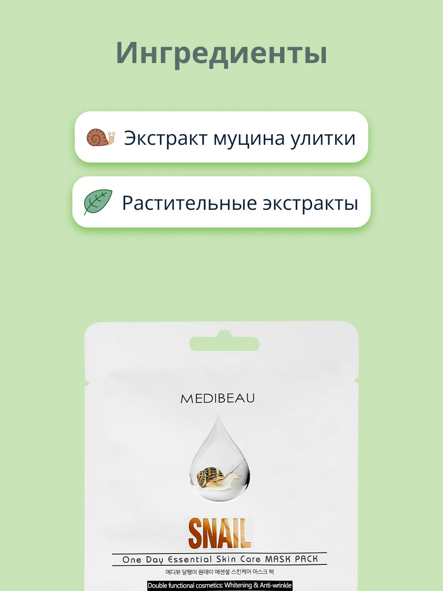 10 цен на Маска для лица MEDIBEAU с экстрактом муцина улитки (регенерирующая) 20 мл