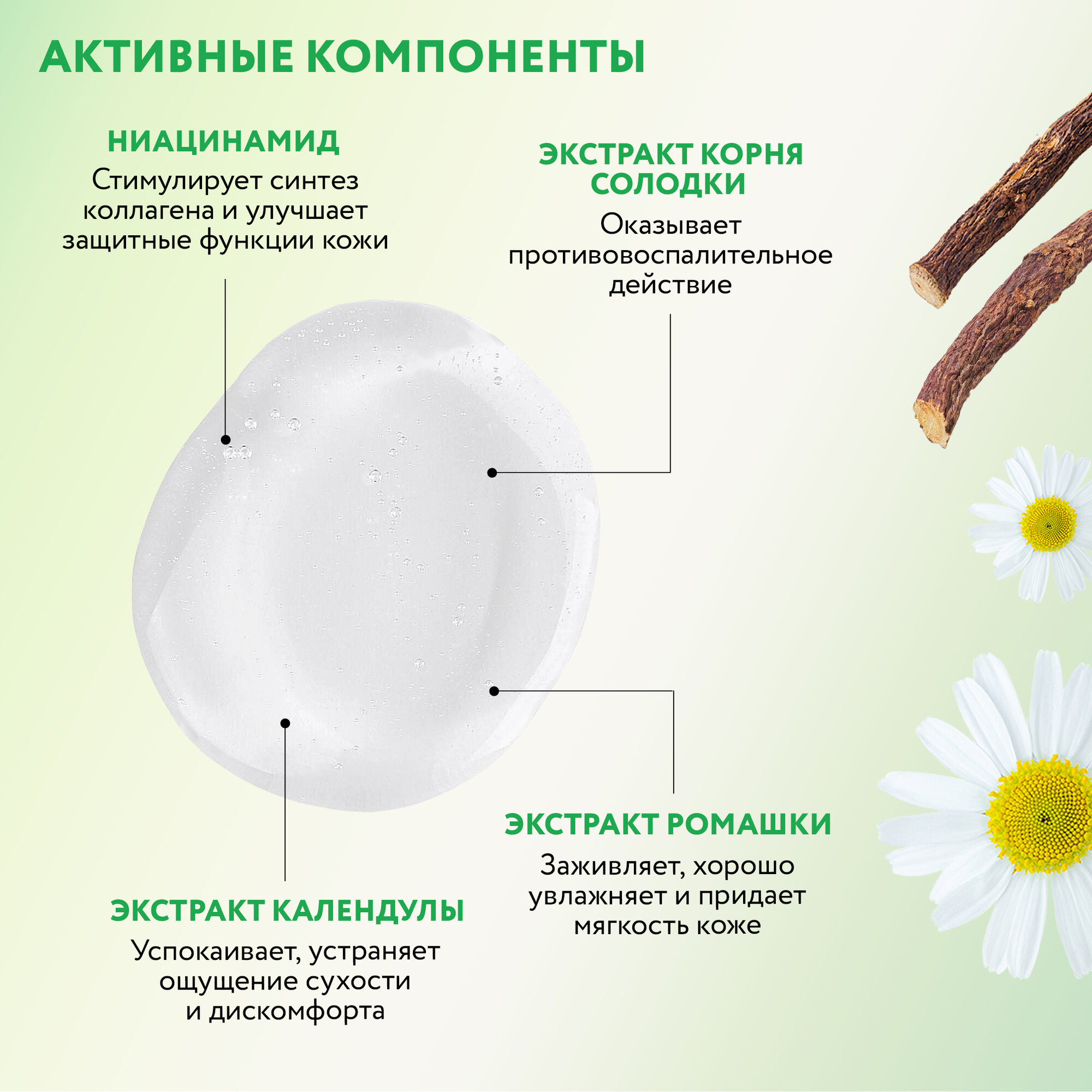 | Состав | косметическая основа, ниацинамид, экстракт календулы, экстракт ромашки, экстракт корня солодки, экстракт мелиссы, экстракт корня женьшеня, экстракт шиповника |