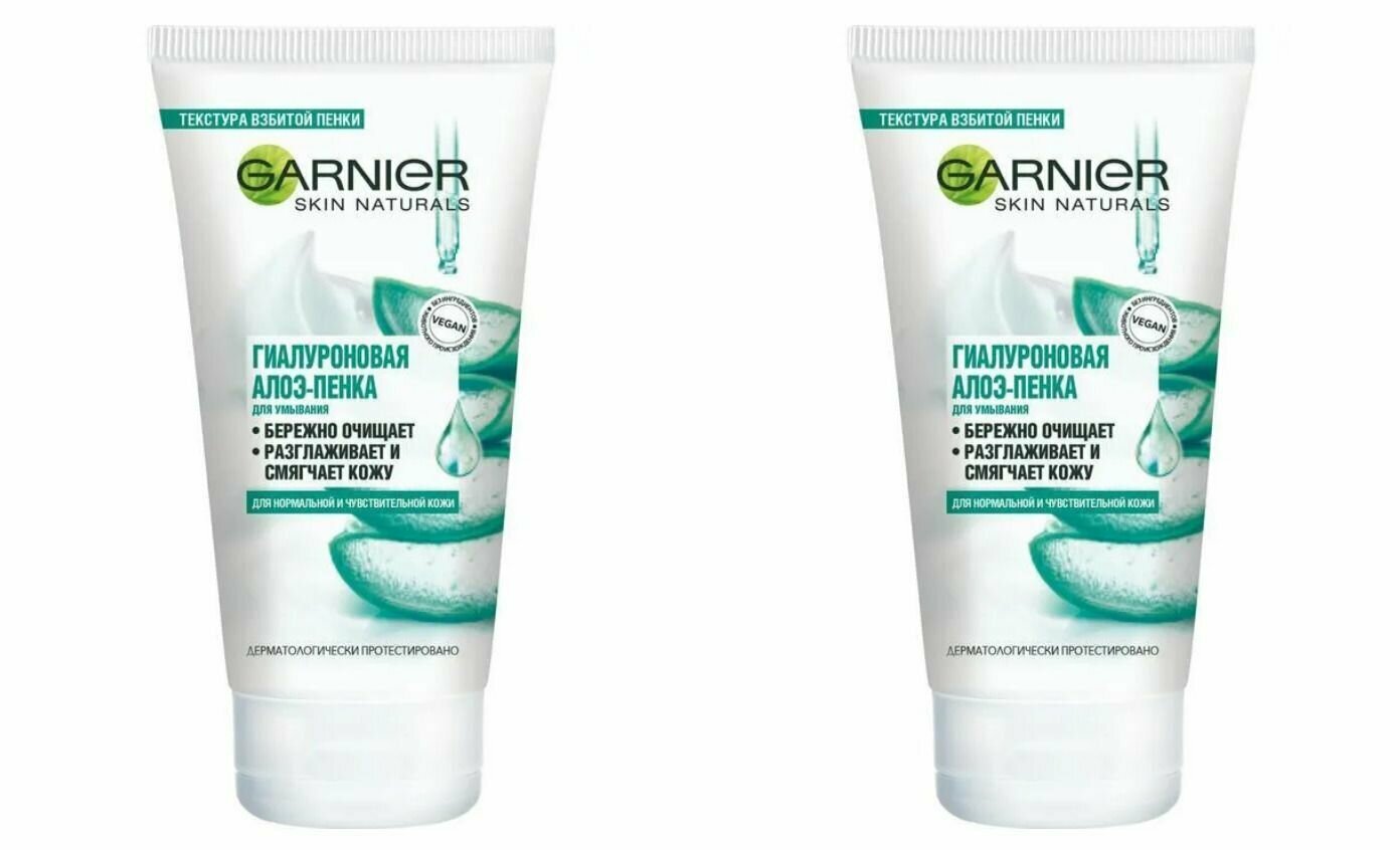 10 цен на Garnier Алоэ гель-пенка гиалуроновая Garnier для умывания нормальной и чувствительной кожи, 150 мл, 2 шт