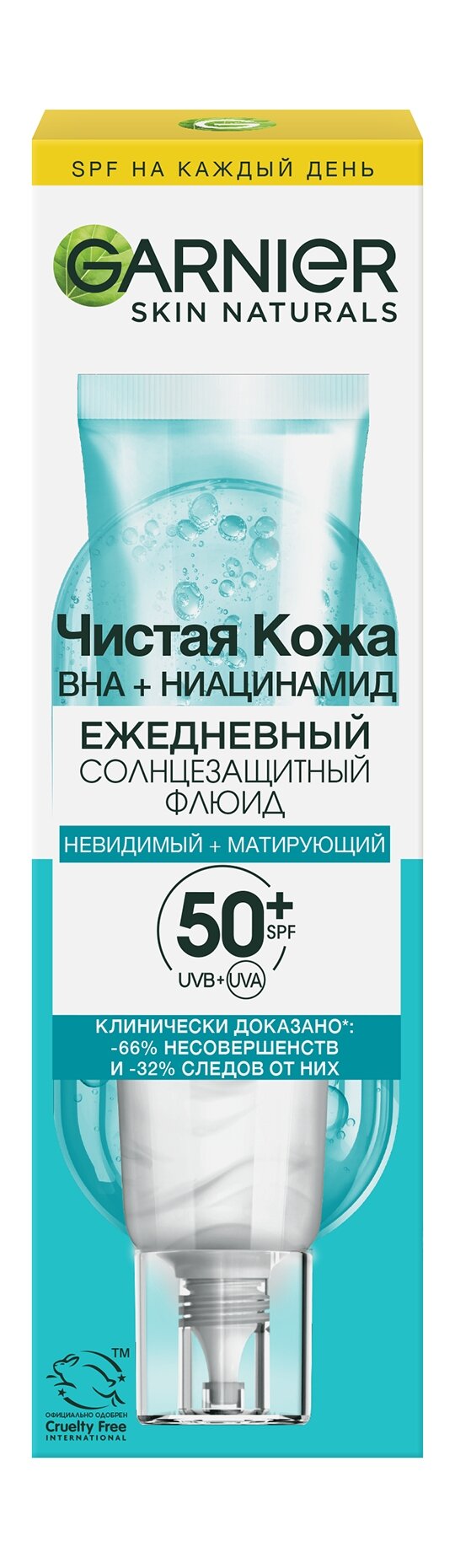 GARNIER Флюид для лица ежедневный матирующий солнцезащитный Чистая кожа SPF 50+, 40 мл информация: