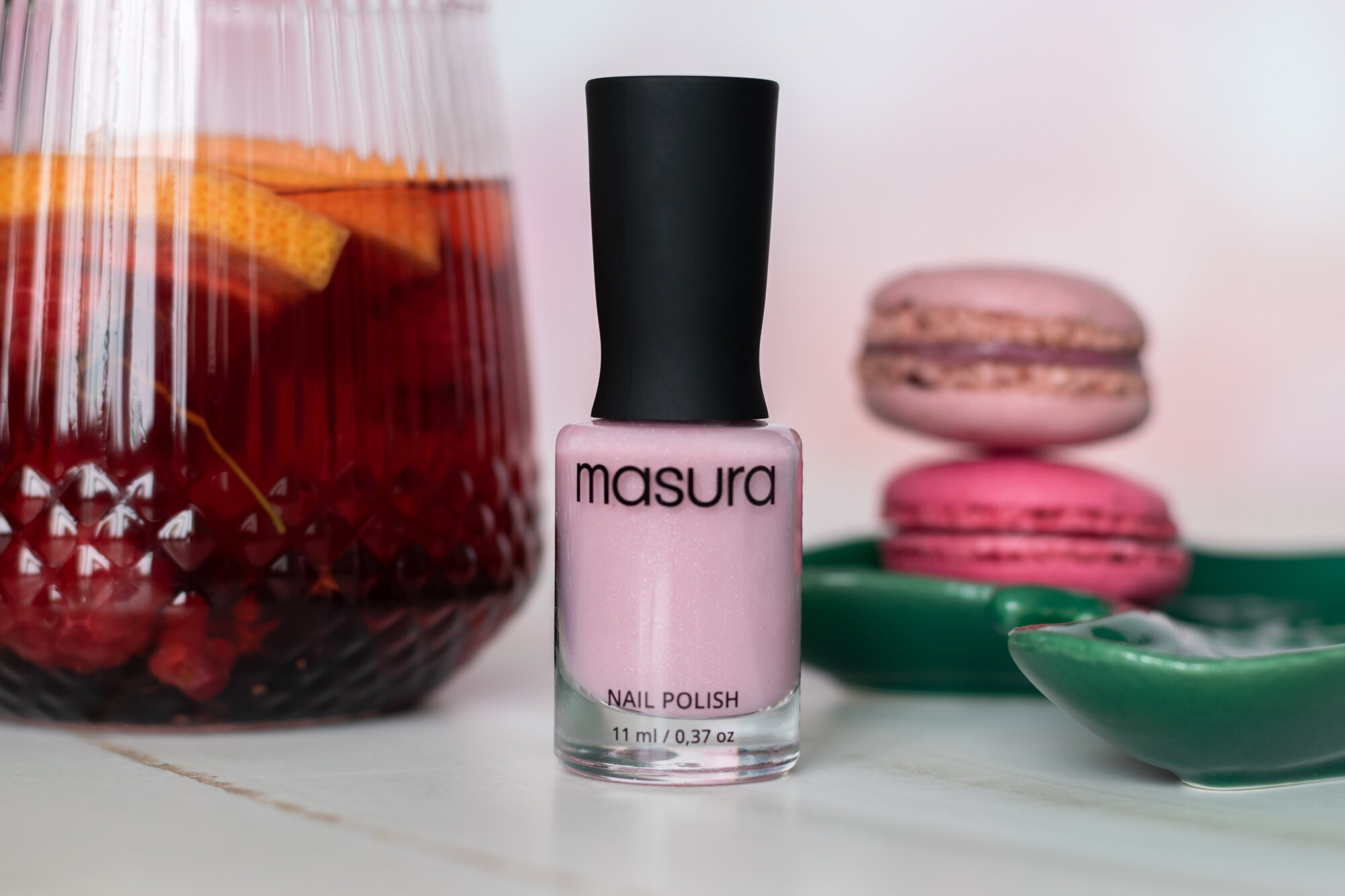 Masura Лак для ногтей Золотой Кварц, розовый полупрозрачный с поталью, с маслом чайного дерева, 11 мл