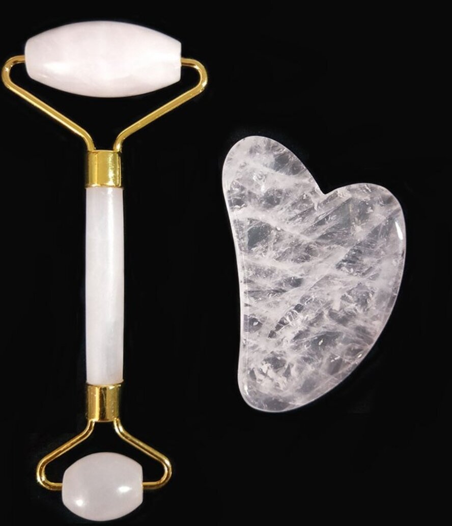 10 цен на Набор Массажный роллер + Скребок гуаша из горного хрусталя