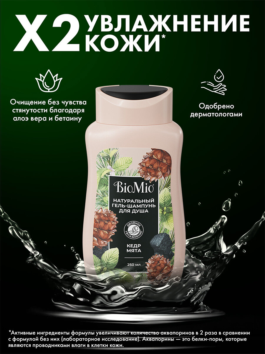 Гель-шампунь для душа BioMio 2в1 с эфирными маслами мяты и кедра 250мл информация: