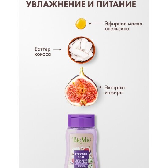 BioMio Натуральный гель для душа с экстрактом инжира и маслом кокоса, двойное увлажнение, 250 мл информация: