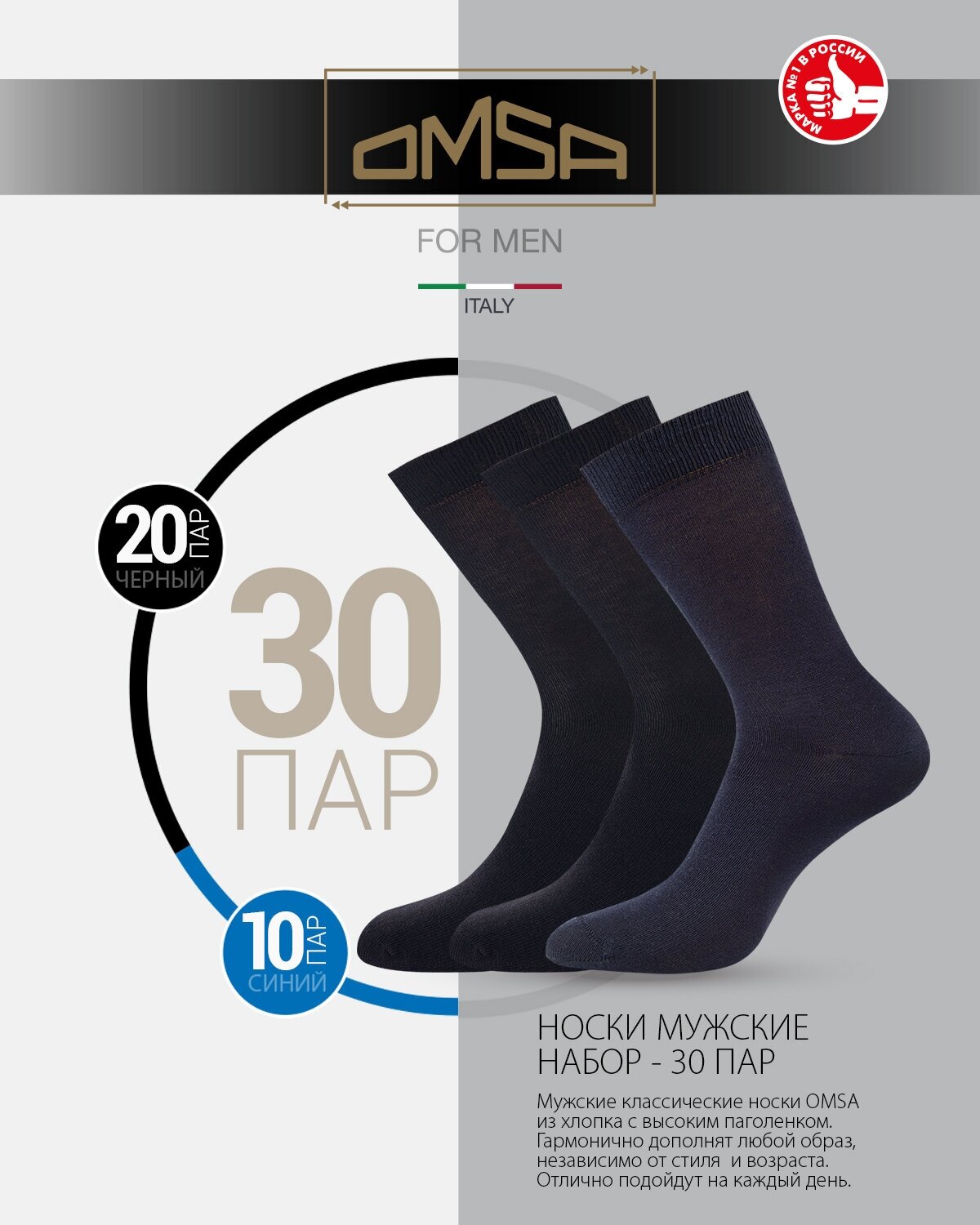 10 цен на Носки мужские OMSA ECO 401, набор 30 пар, Цвет Nero/Blu, Размер 42-44 (27-29), уп."С окном"