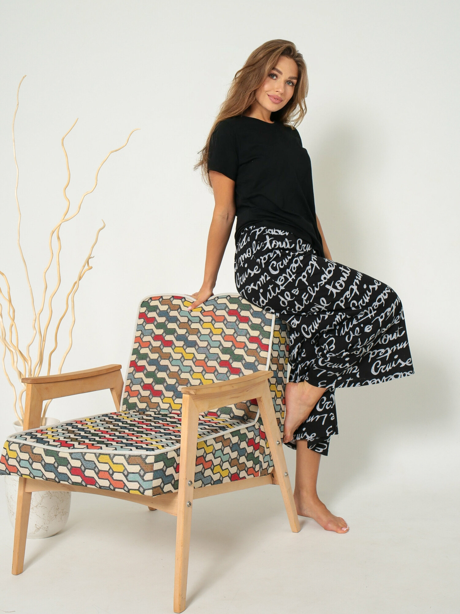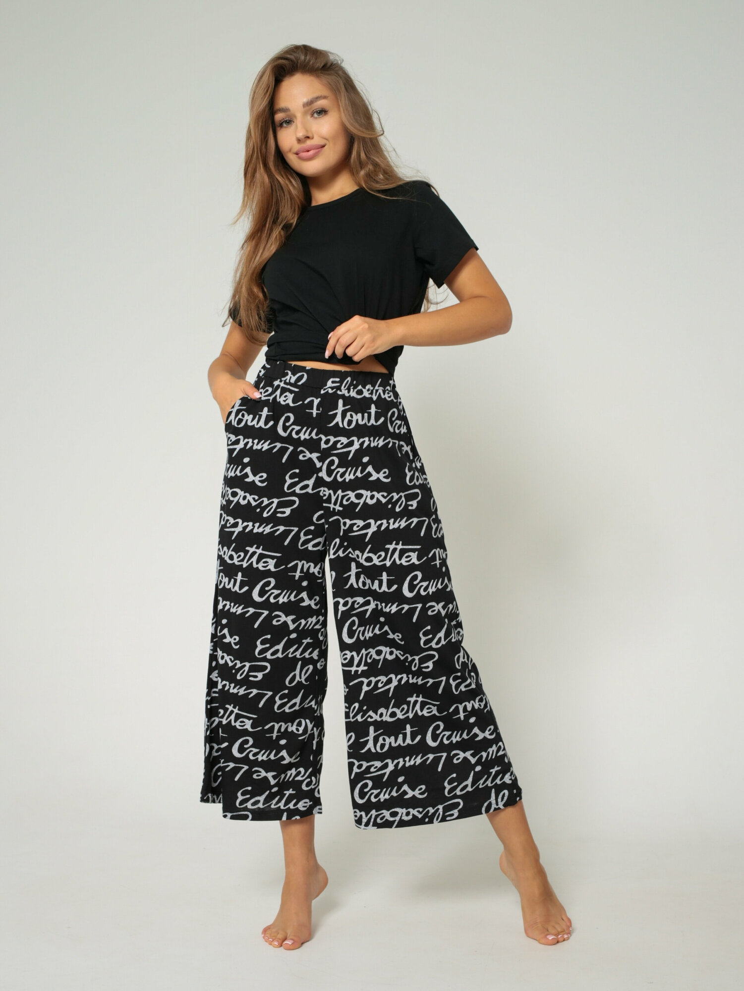 Пижама женская с бриджами, хлопок, цвет черный, София37, размер 44 1 370 ₽