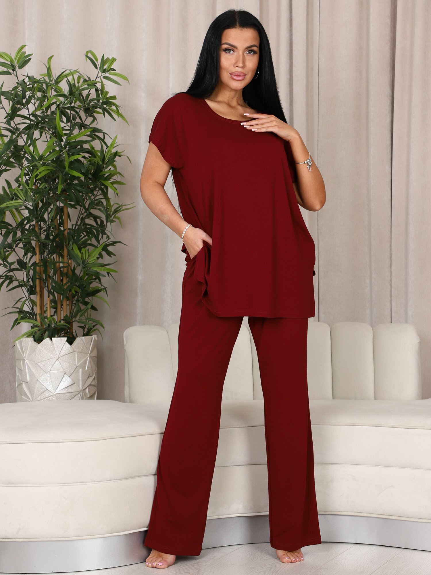Пижама женская с брюками больших размеров Амэда бордовый IvCapriz 60 2 310 ₽