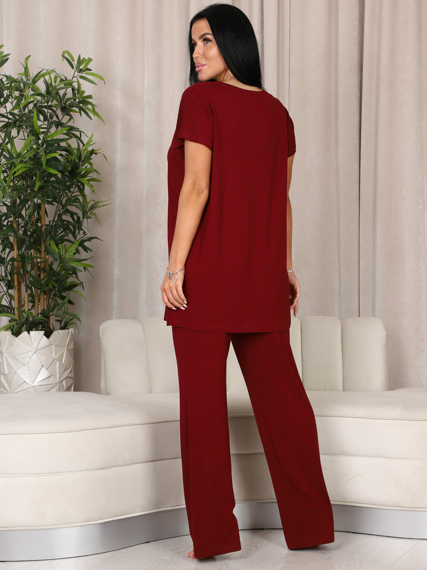 Пижама женская с брюками больших размеров Амэда бордовый IvCapriz 52 2 310 ₽
