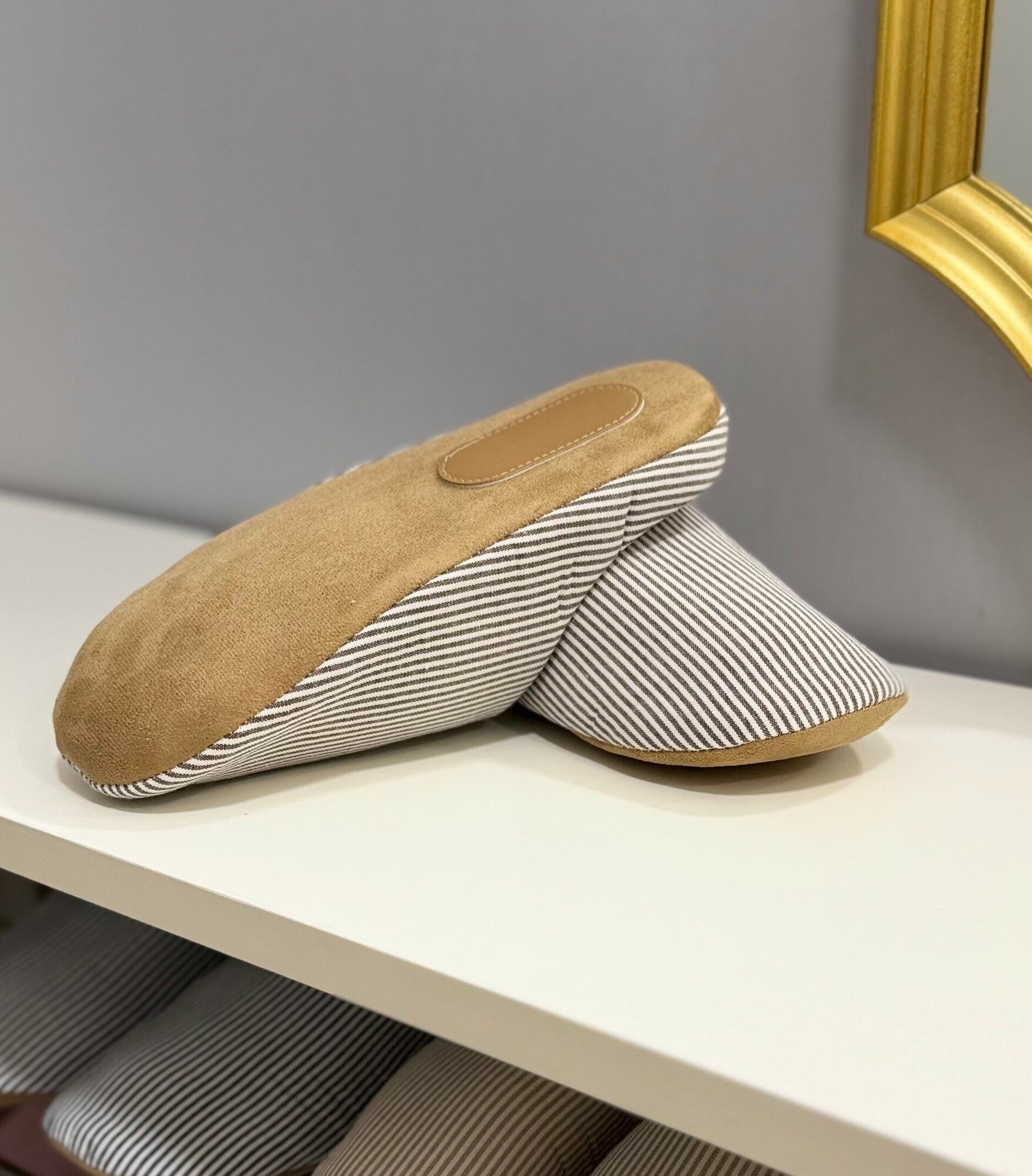 Отзывы на Тапочки домашние в полоску для всей семьи закрытые в японском стиле размер 39-40 L кофейный