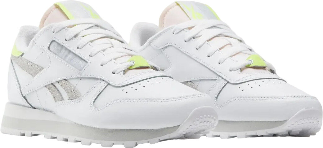 Кроссовки Reebok Classic Leather, полнота F, размер 6 US, белый/серый/желтый 10 141 ₽