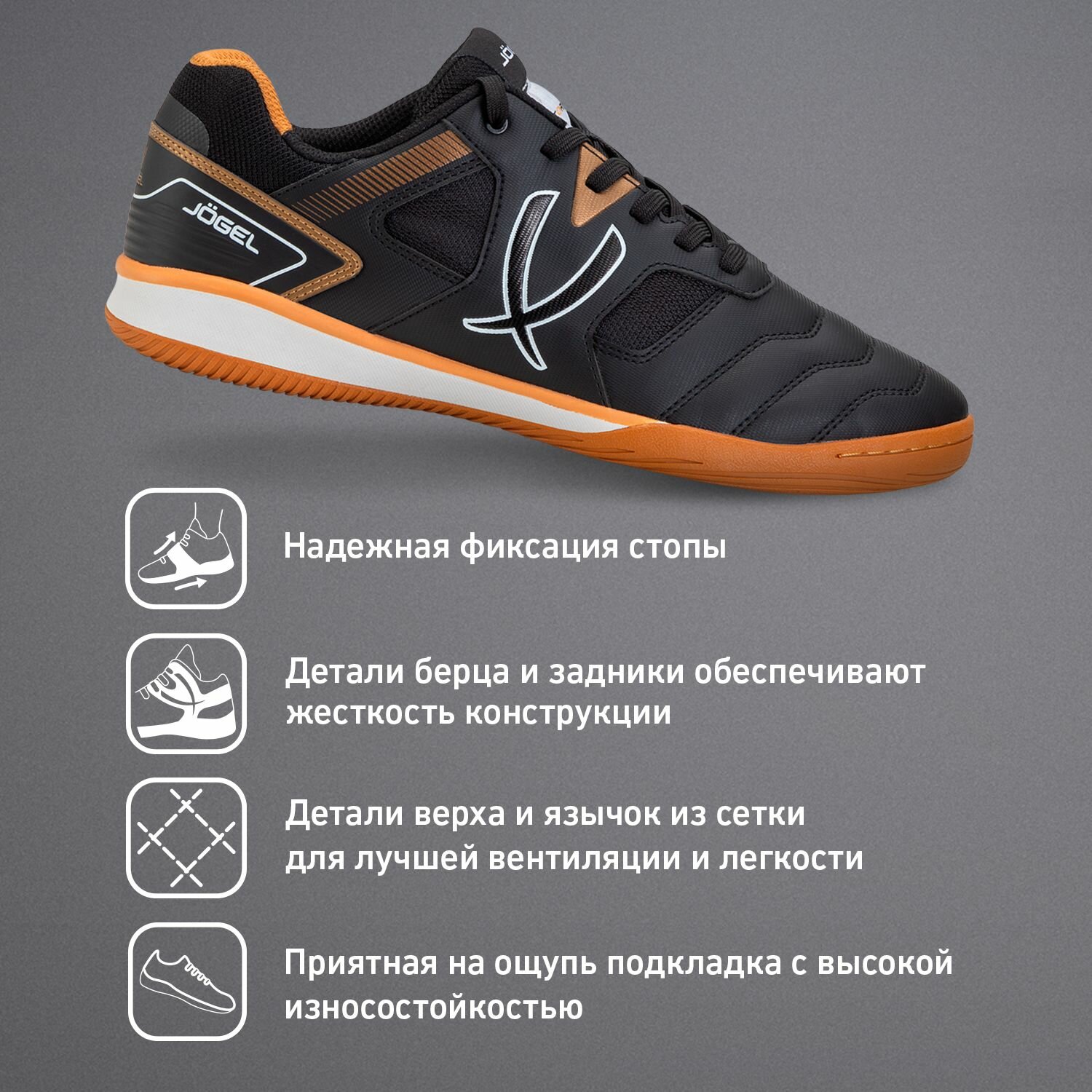 Бутсы зальные Jogel Mondo цвет черный, бутсы мужские для зала, размер 37