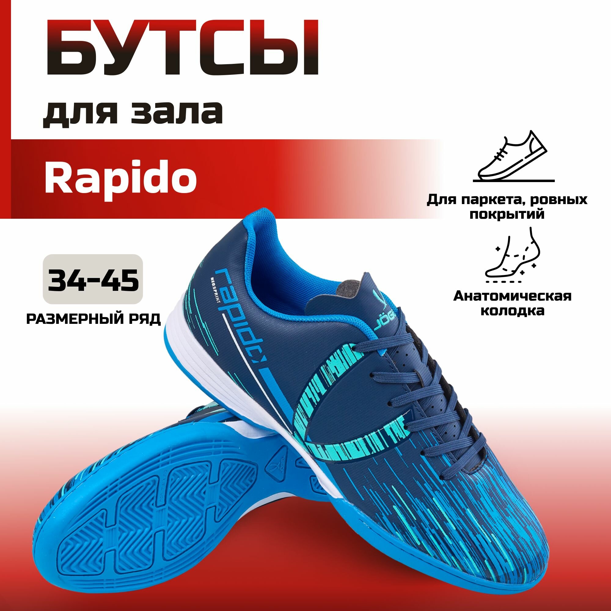 Отзывы на Бутсы зальные Jogel Rapido цвет голубой, размер 44, бутсы для футзала