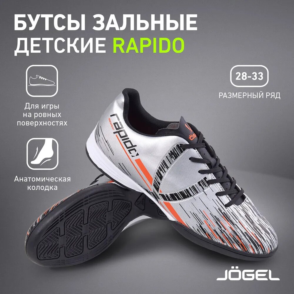 Бутсы зальные Jogel Rapido цвет серебристый, детские, размер 32 информация: