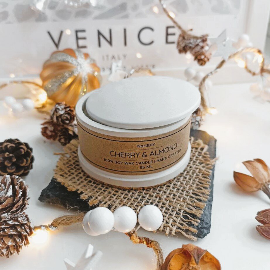 Отзывы на Свеча ароматическая с деревянным фитилём "Вишня-Миндаль" из соевого воска в стакане из гипса