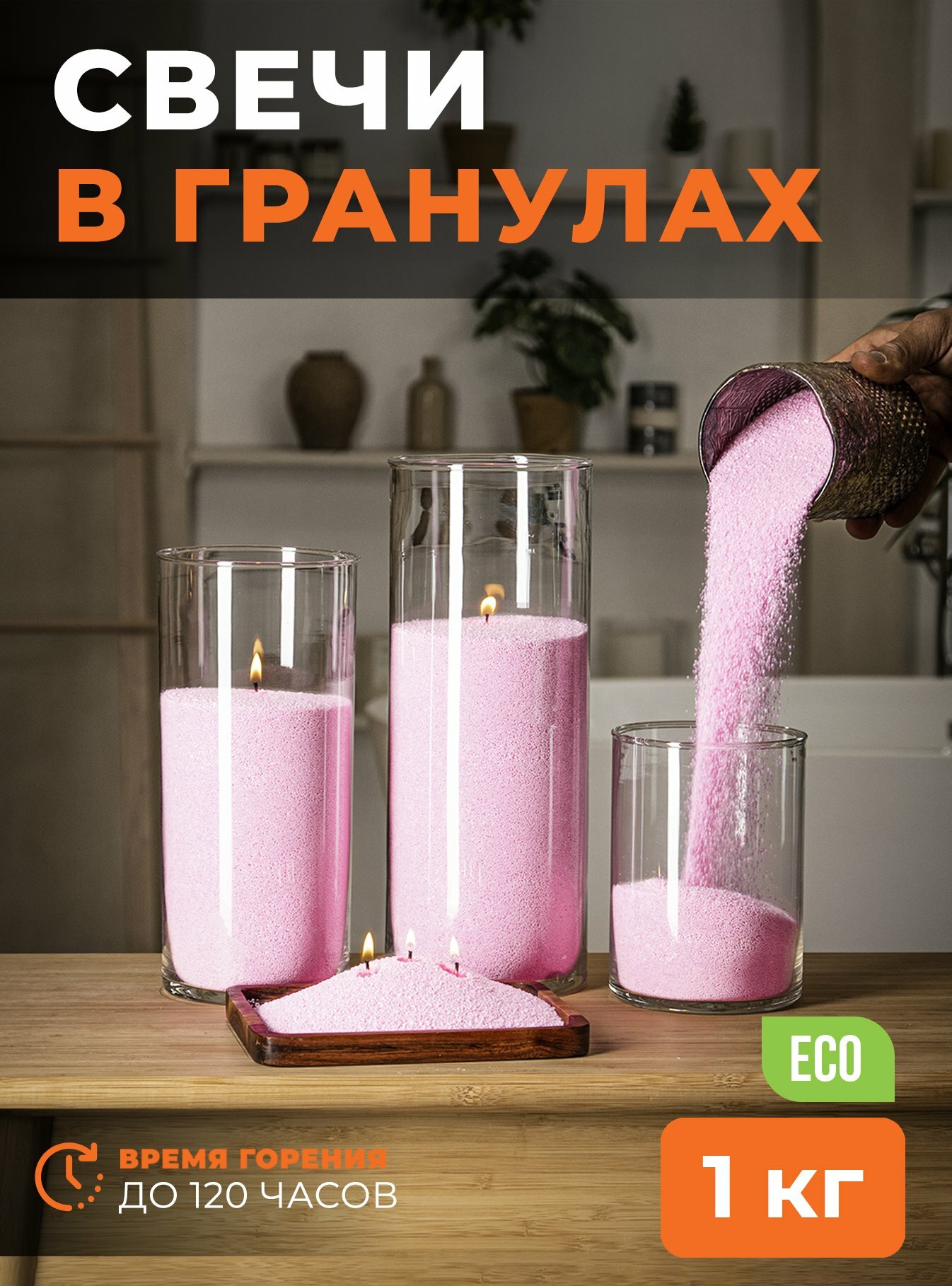 10 цен на Свечи не ароматические насыпные "RosCandles" нежно-розовые, 1 кг воска + фитиль 2м