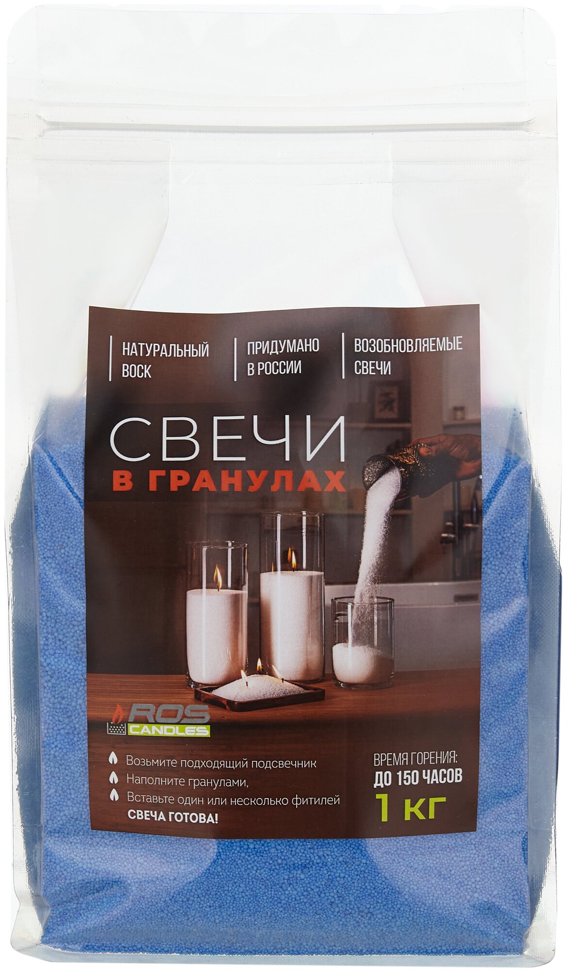 Свечи не ароматические насыпные "RosCandles" синие, 1 кг воска + фитиль 2 м информация: